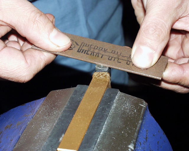 - 仕上げ研磨 焼成砥石で研磨した後、ぼろ布などで刃先の汚れををきれいにふき取り、WA砥石の油を極力薄く濡れた状態にします。